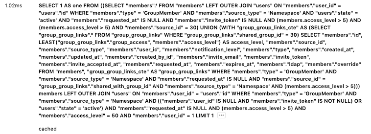For this example, wrap the profiler around the Groups::GroupMembersController#index action. Before the fix, the application had