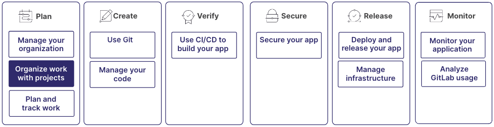 Projects in GitLab organize all the data for a specific development project. A project is where you work with your team, store your files, and manage your tasks.