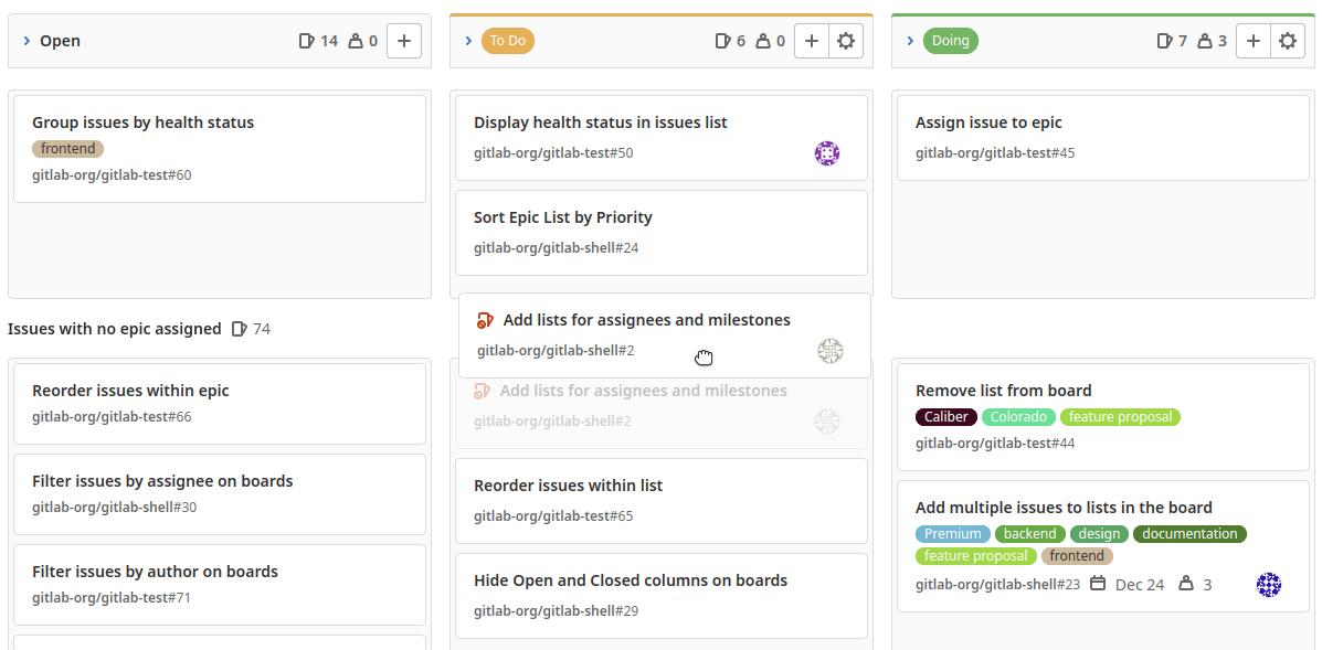 For example, to add an issue to a list scoped to the Doing label, in a group issue board: